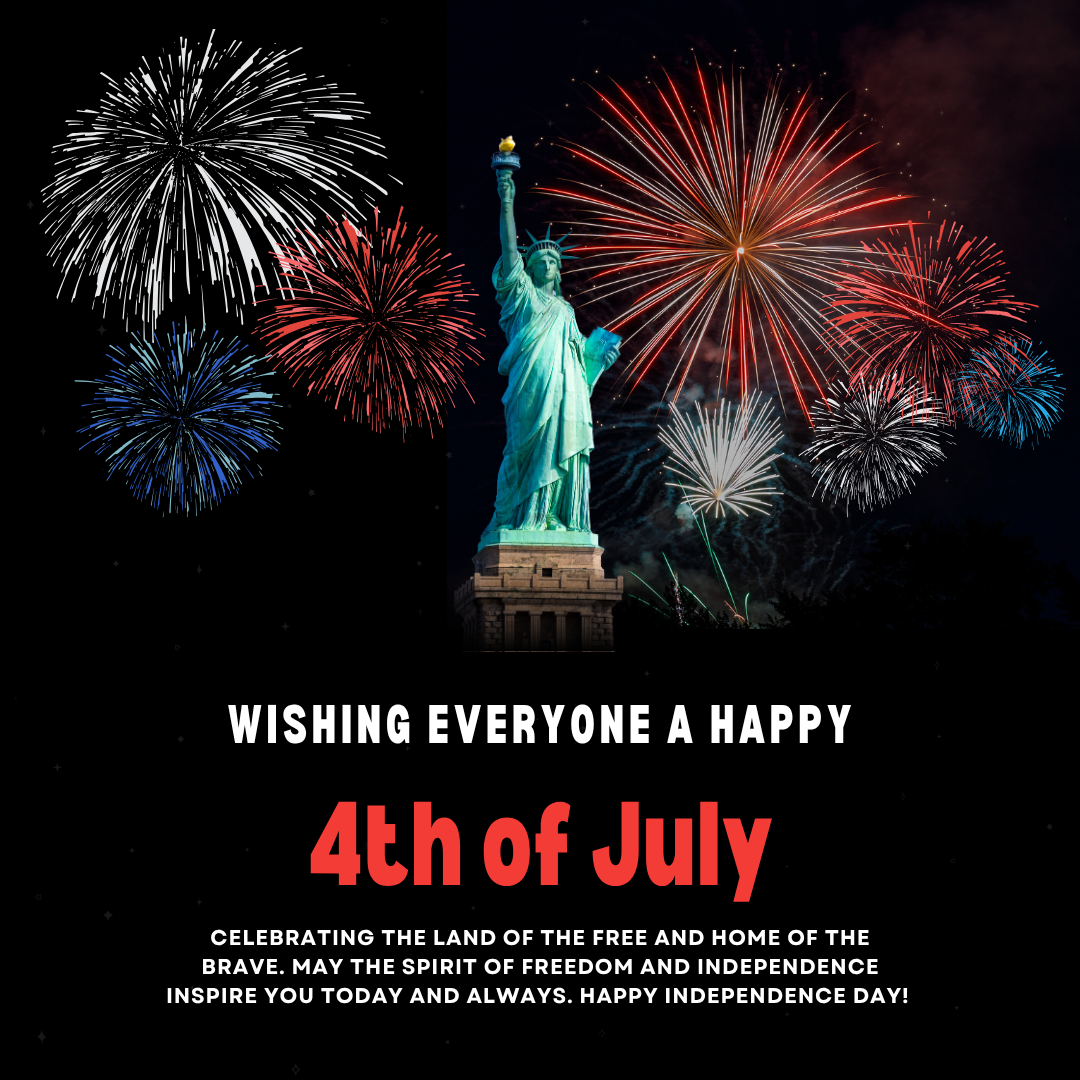 Celebrating the land of the free and home of the brave. May the spirit of freedom and independence inspire you today and always. Happy Independence Day!
